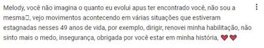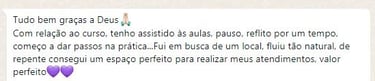 Esse é apenas um dos depoimentos de uma aluna 1 DIA depois de entrar no curso Os Segredos da Prosperidade...